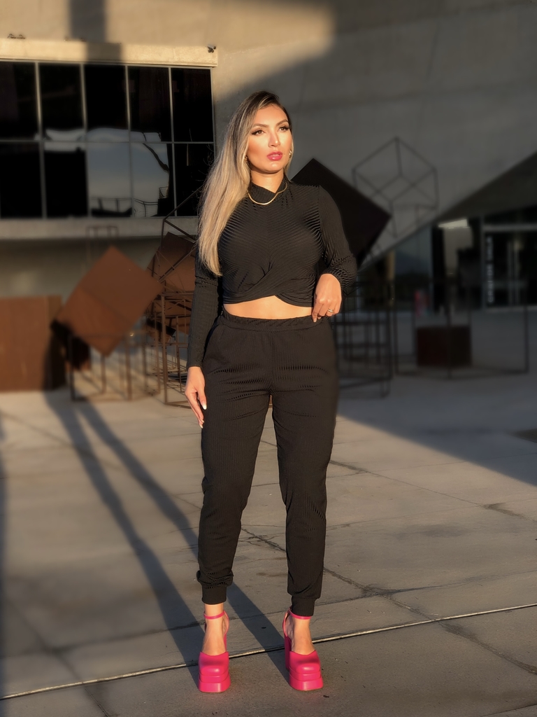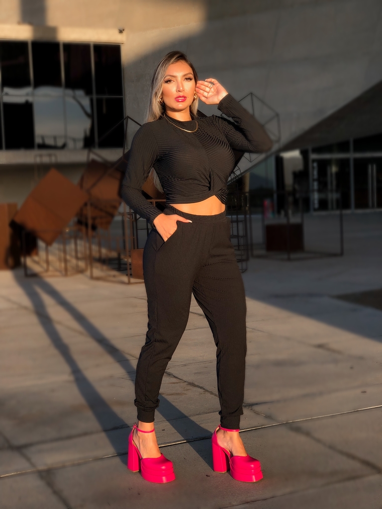 CALÇA CANELADA COM ELASTICO NO CÓS E BOLSO