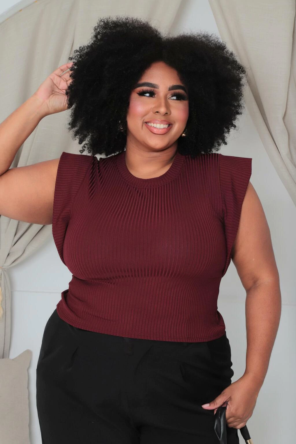 CROPPED MARSALA PLUS SIZE MUSCLE TEE