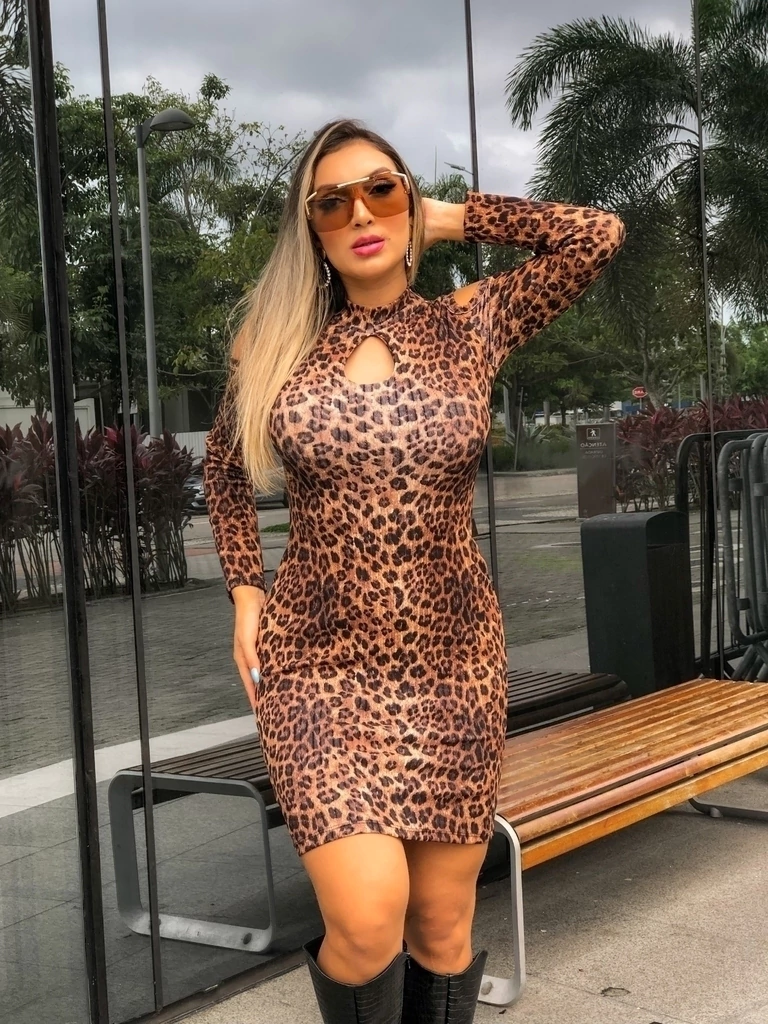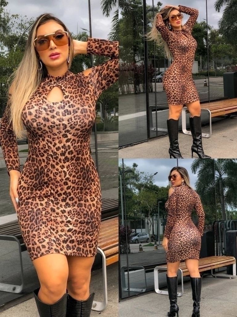 VESTIDO MANGA LONGA COM DECOTE GOTA E OMBRO VAZADO